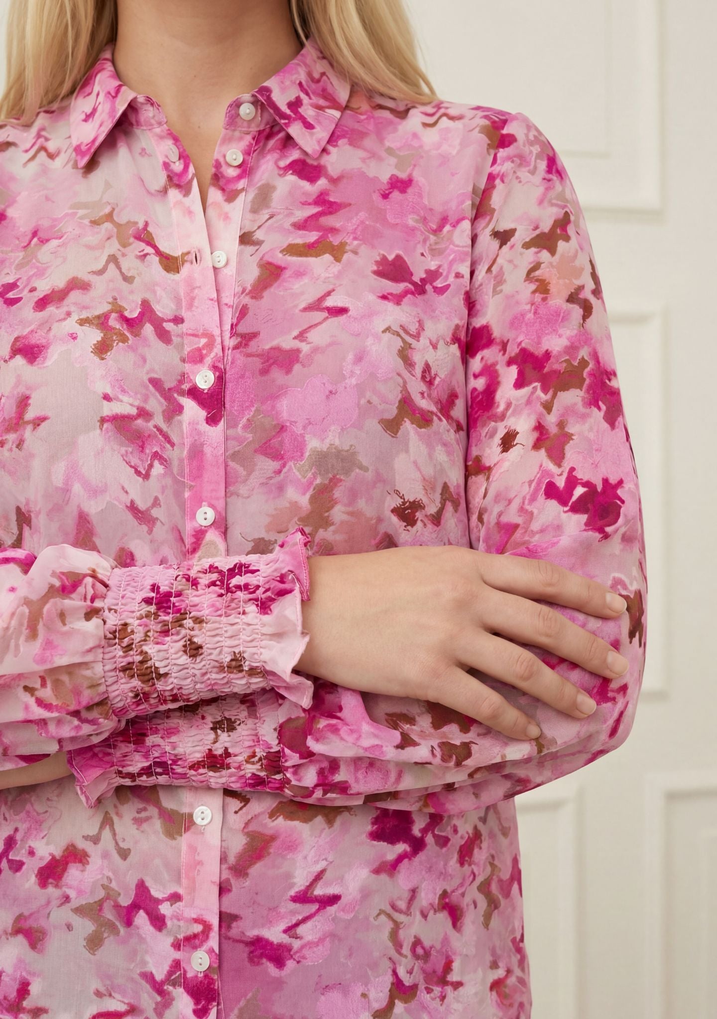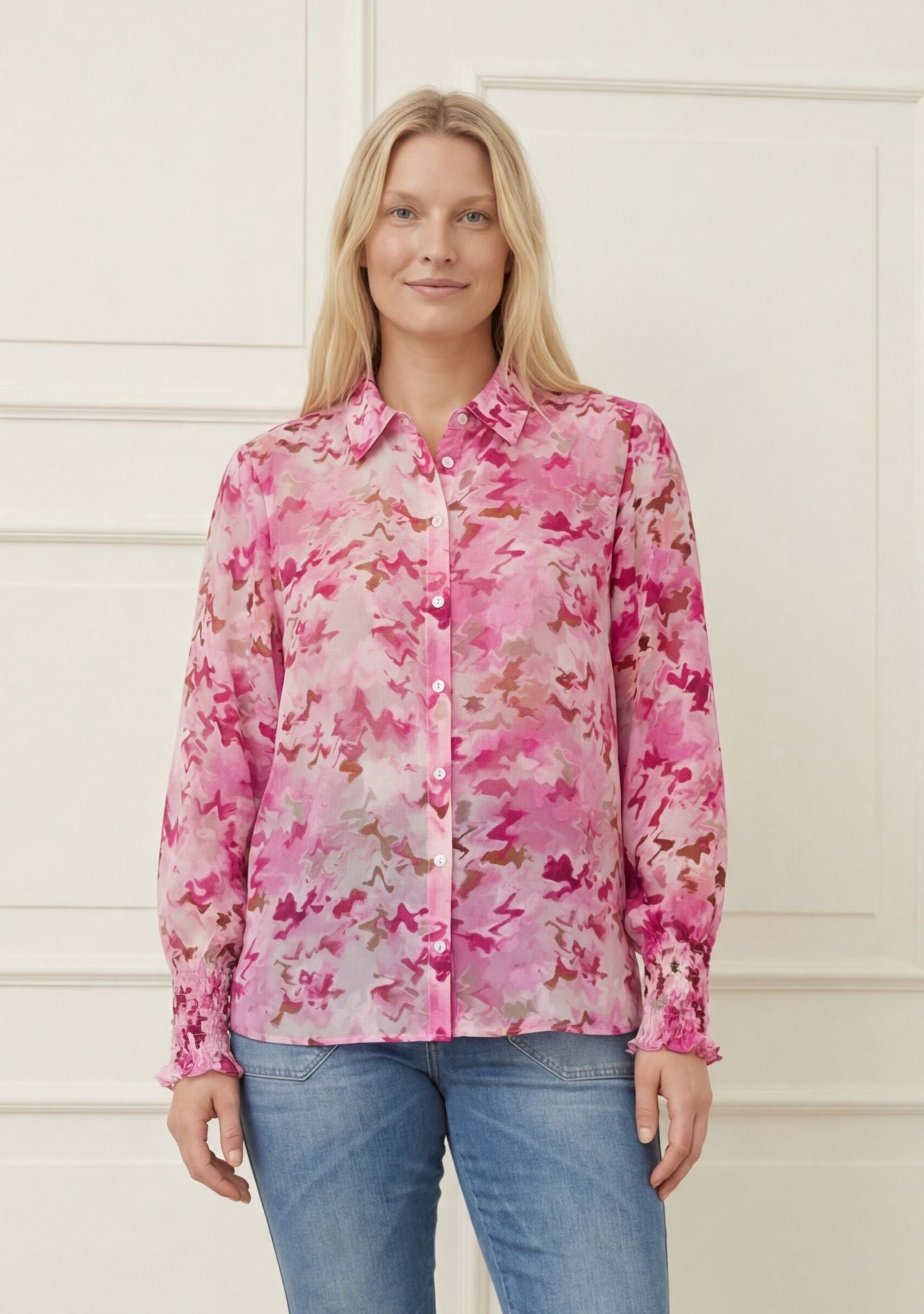 The classic collar and button closure keep the style simple, while the smock details on the sleeves bring a bit of extra character and a feminine touch.