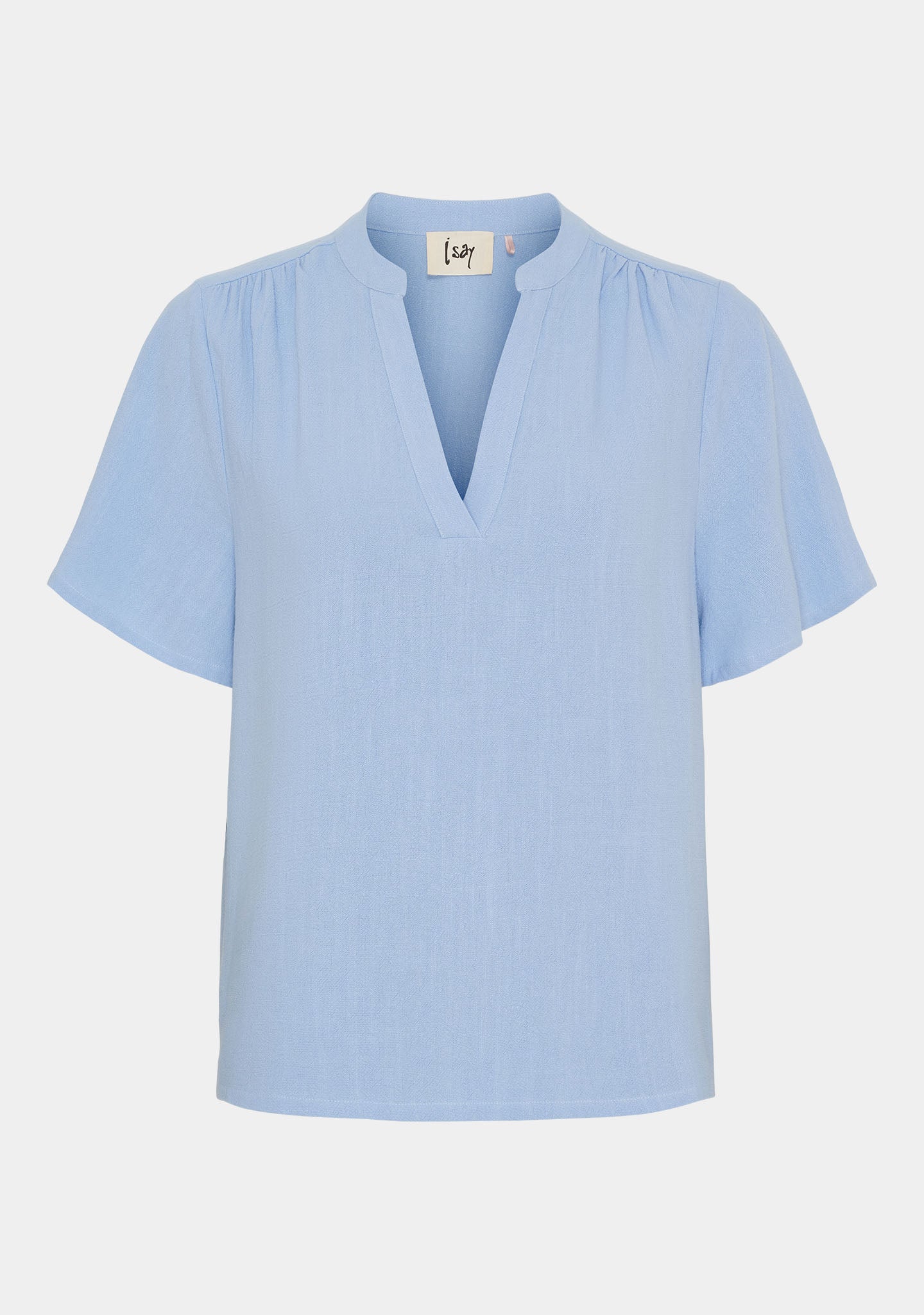 The small stand-up collar and the open V-neckline give a clean and feminine look, while the fine pleats at the shoulders add a discreet detail that elevates the whole. The sleeves have a slight width, so they fall nicely and give a relaxed, airy expression. The material is a beautiful blend of linen and viscose. You get the characteristic linen structure and the natural, vibrant surface - combined with the softness and drape of viscose. It feels light and breathable against the skin and is perfect for warm days.