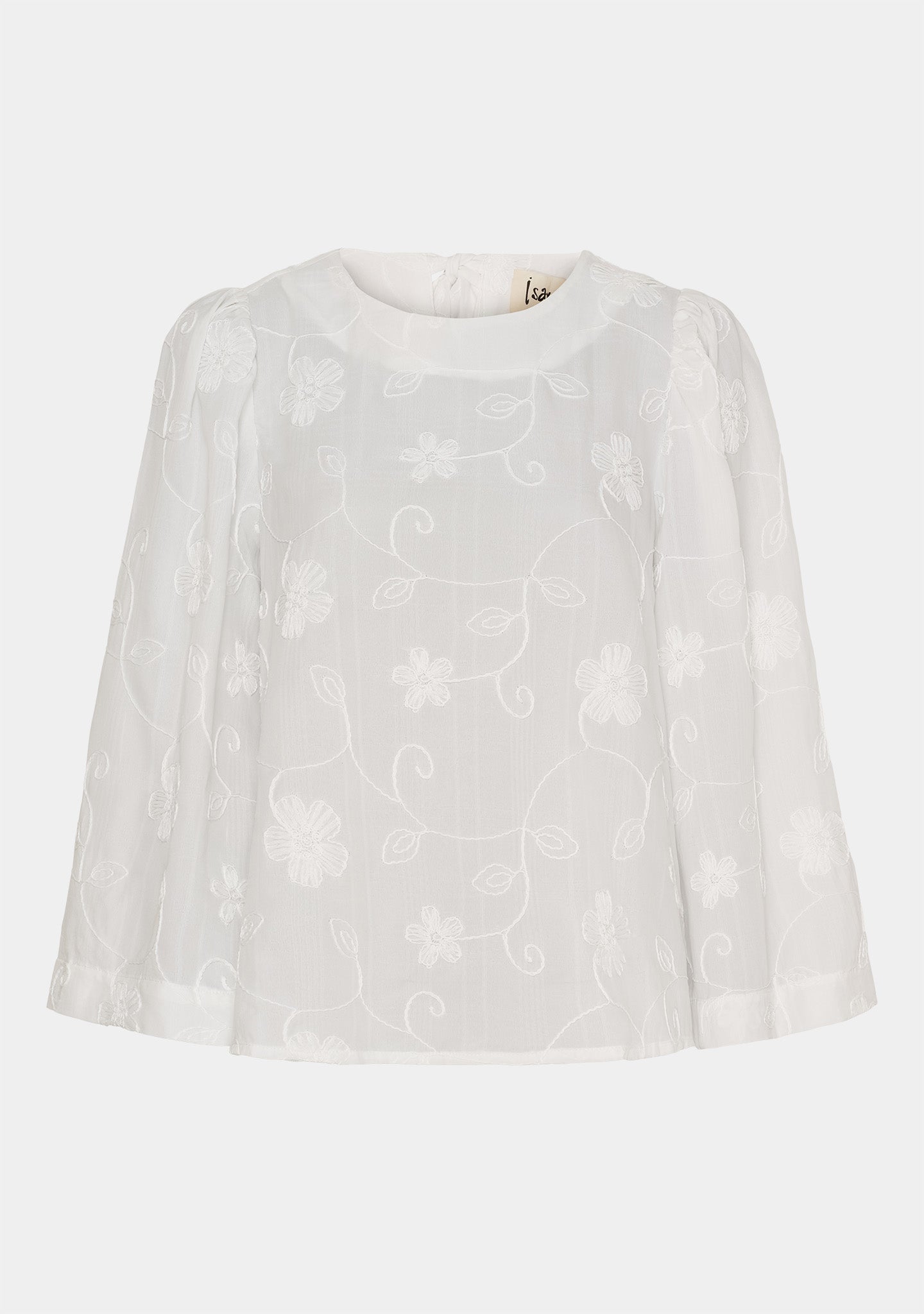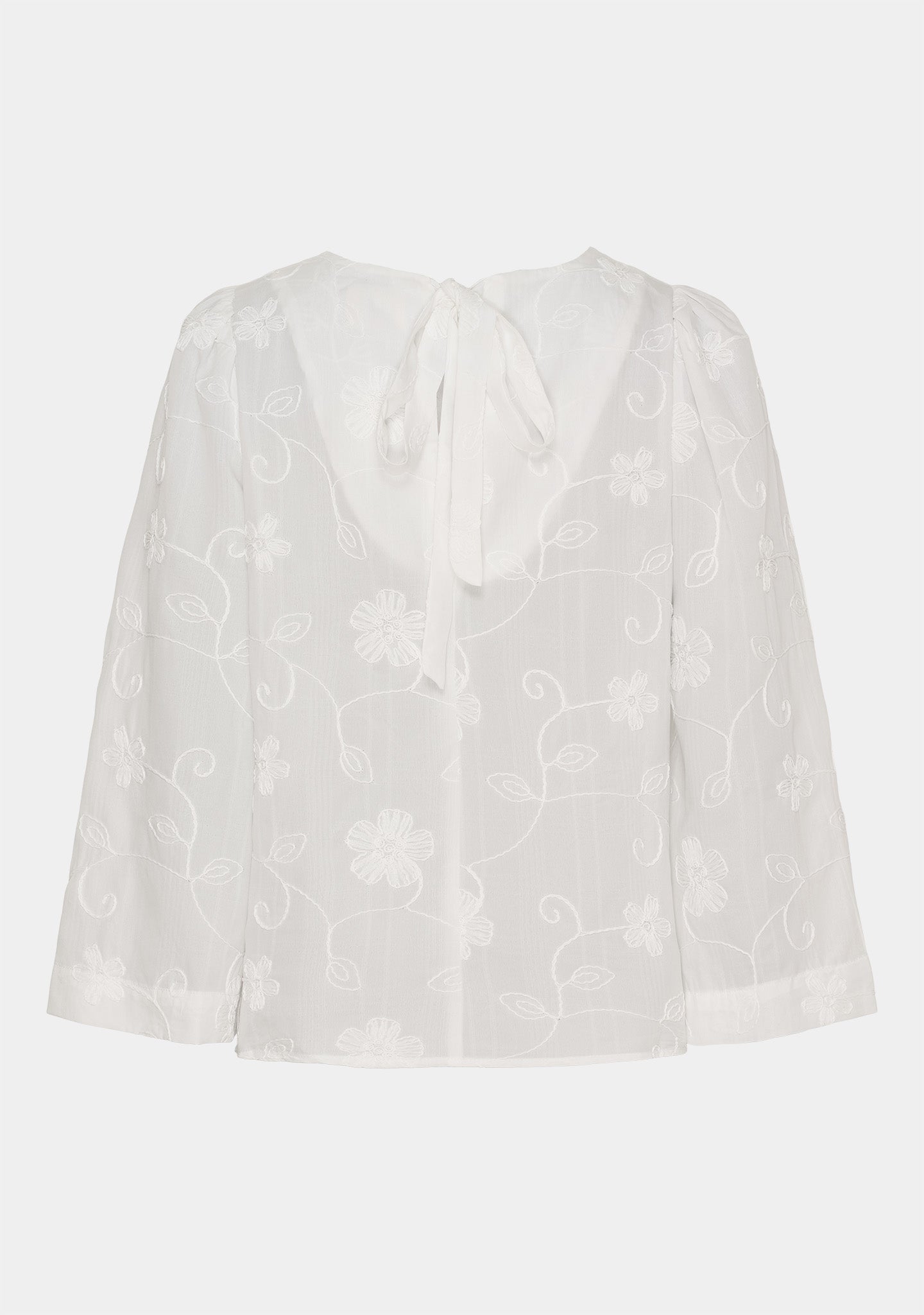 The Juna Blouse is the perfect choice for those looking for a feminine and sophisticated blouse with unique details. The embroidered patterns add depth and elegance, while the tie at the back of the neck provides a stylish touch. The long, lightly voluminous sleeves create a beautiful silhouette, and the lightweight material ensures an airy and comfortable fit all day long.