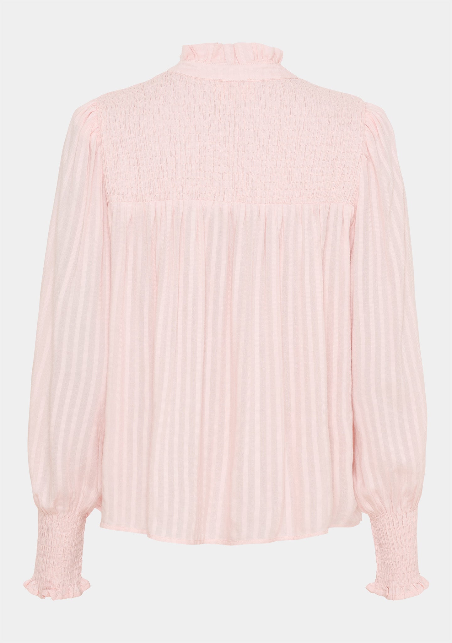 The Lea Blouse is a feminine blouse with a light and airy expression. The relaxed fit provides a comfortable silhouette, while the small standing collar and V-neck add an elegant touch. The smock detail at the top offers a beautiful structure, and the long sleeves are finished with smock and a light wavy edge, emphasizing the feminine design. Made in a soft viscose blend with a light structure that feels pleasant against the skin and drapes beautifully on the body.