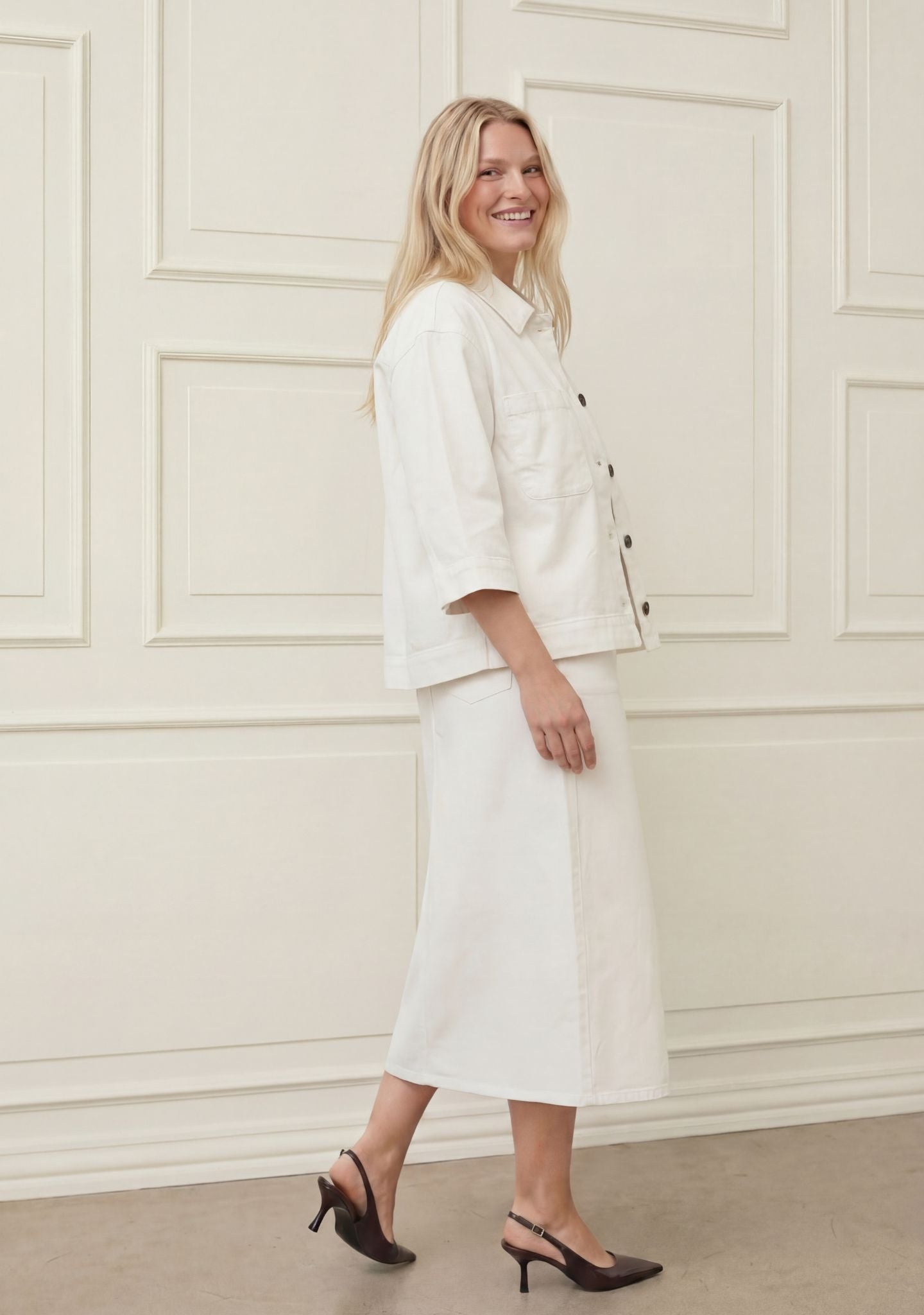 Wear it over a dress for an effortless everyday look – or style it with jeans for a cool denim-on-denim style. It also works perfectly over a T-shirt and wide-legged trousers when you're aiming for a relaxed feel.