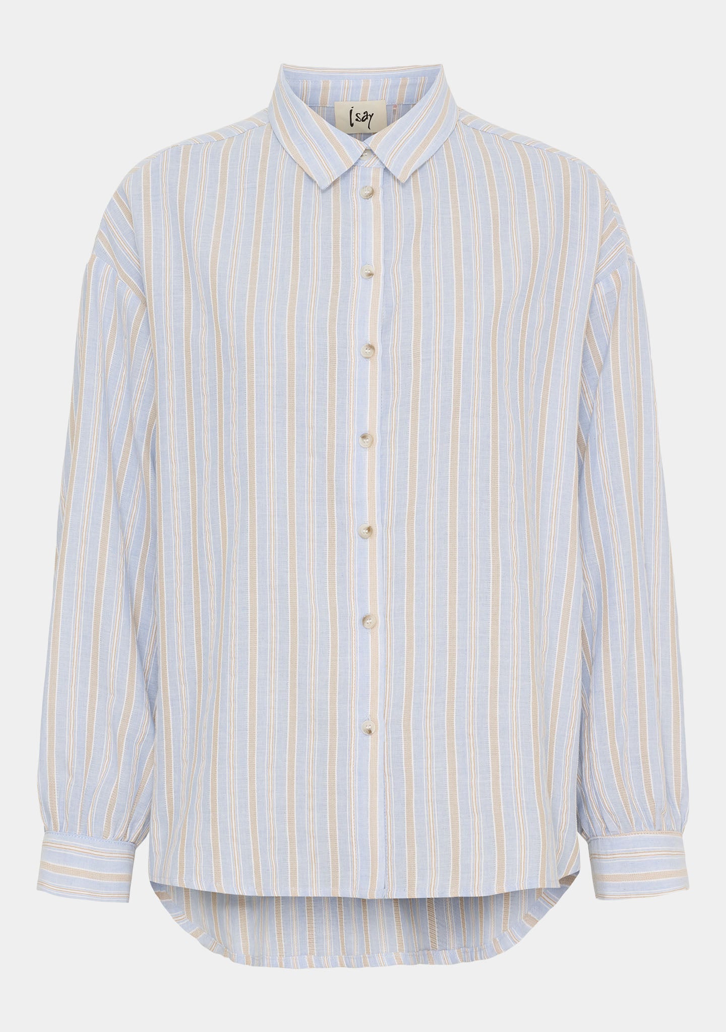 Liane Shirt is a timeless shirt that combines classic lines with a relaxed silhouette. It features a traditional shirt collar, full buttons, and long sleeves finished with cuffs, giving it a well-dressed and versatile look. The rounded hem makes the shirt easy to style both loose and tucked into pants or a skirt. Made in a soft cotton blend with polyester, making it comfortable, breathable, and shape-retaining.