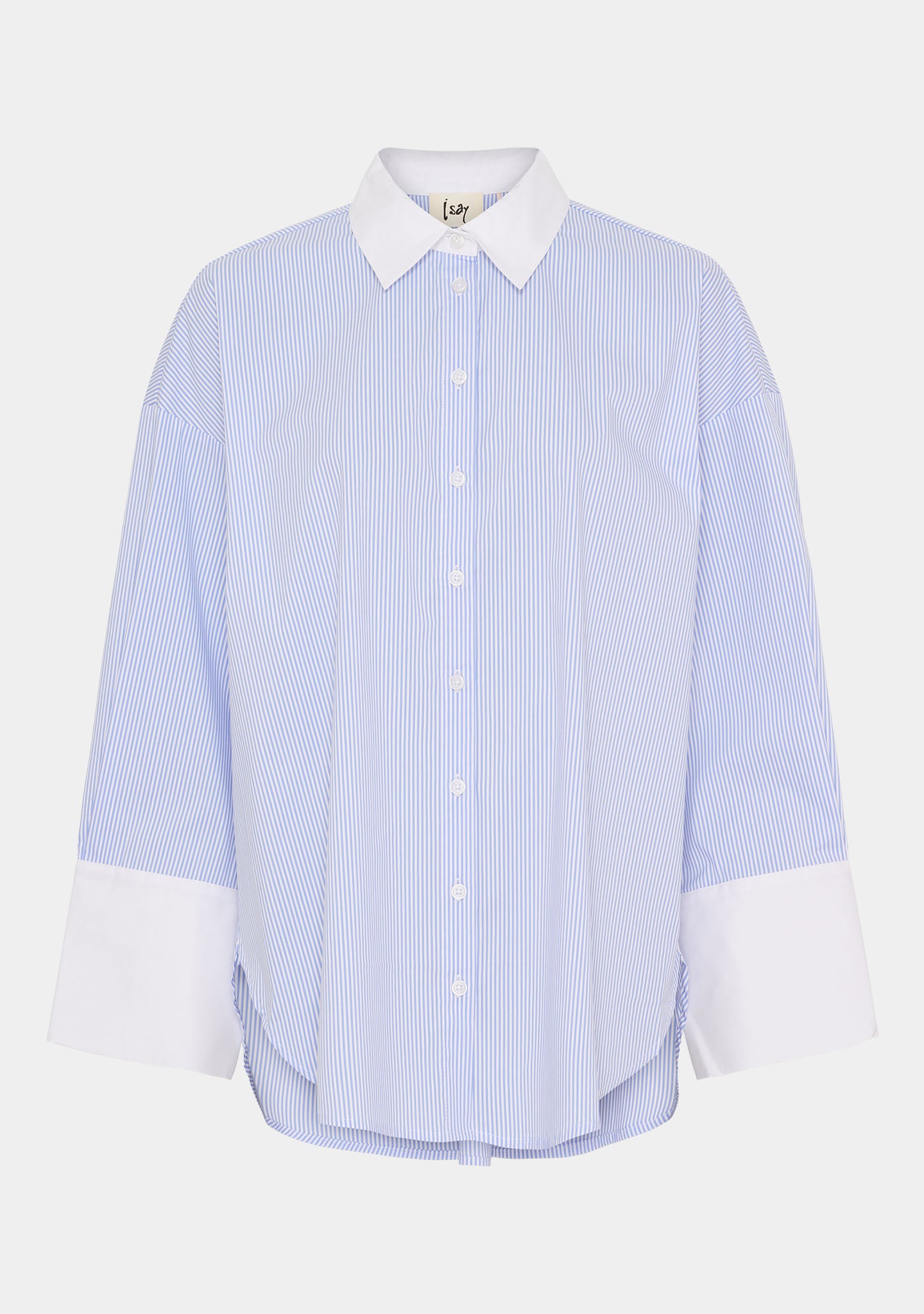 The Sigga Contrast Shirt is a stylish shirt with a modern twist. It has a loose and oversized fit, giving an effortless and cool look. Classic details like a shirt collar and full button placket are revitalized with contrast cuffs and collar, adding a graphic and sophisticated expression to the shirt. The wide cuffs with buttons emphasize the elegant design, while the curved hem creates a relaxed silhouette. Made with a cotton blend with stretch, making the shirt comfortable to wear and providing good mobility.