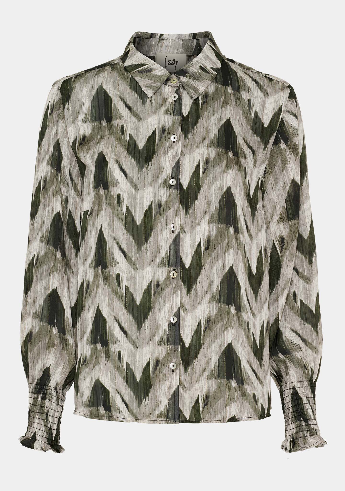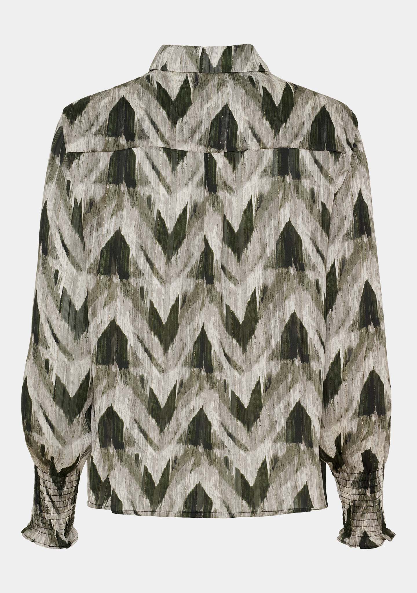 Our elegant Vibse shirt is versatile and can be styled in many ways. This shirt is transparent in its material and has a lovely loose and spacious fit. It features a classic button closure with buttons all the way down and a pointed collar. Vibse shirt has a flattering print and the finest smock details at the sleeve openings, adding a feminine touch. It can be stylishly paired with a pair of pants or a smart skirt, preferably with a pair of classic loafers for a perfectly elegant look.