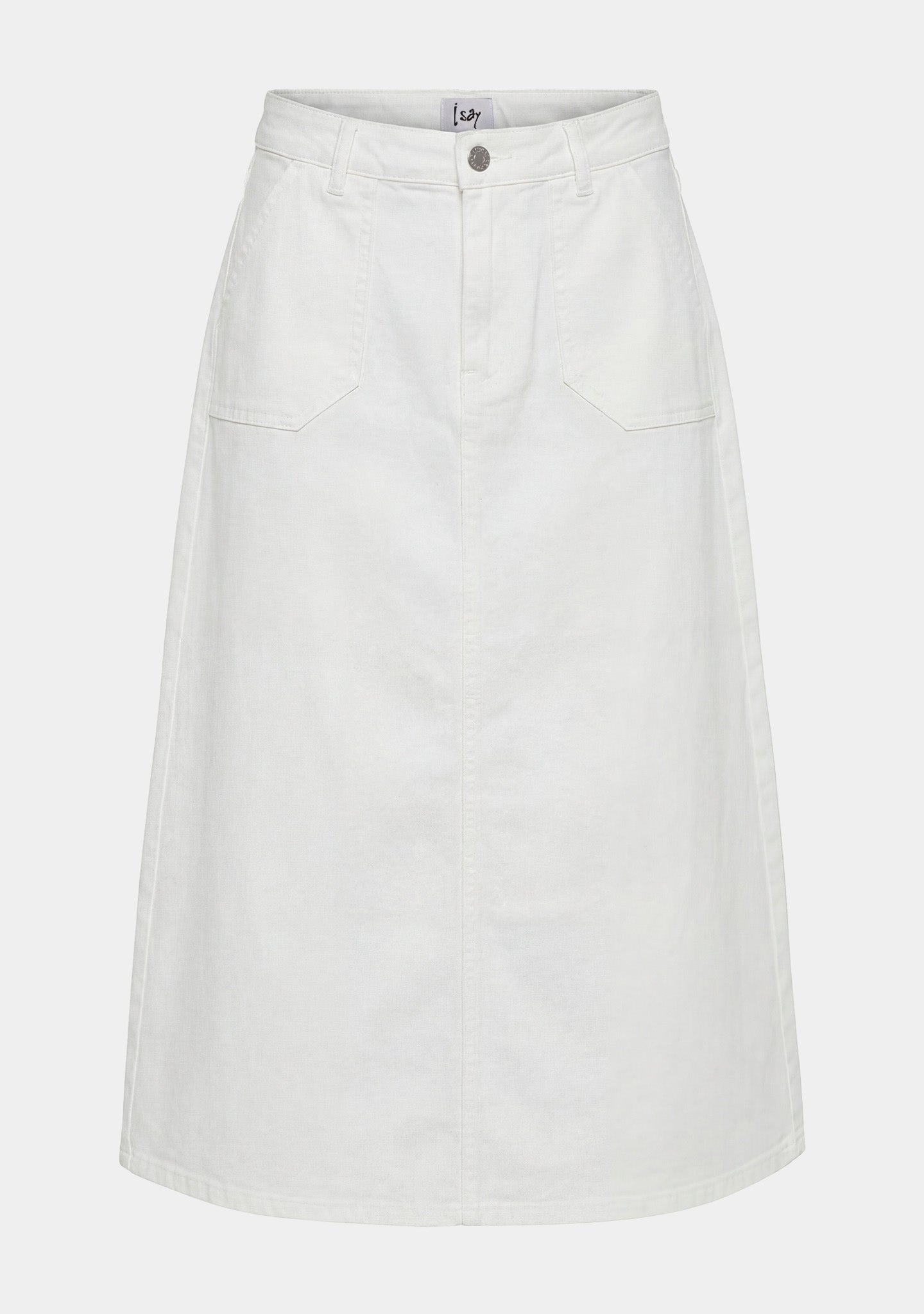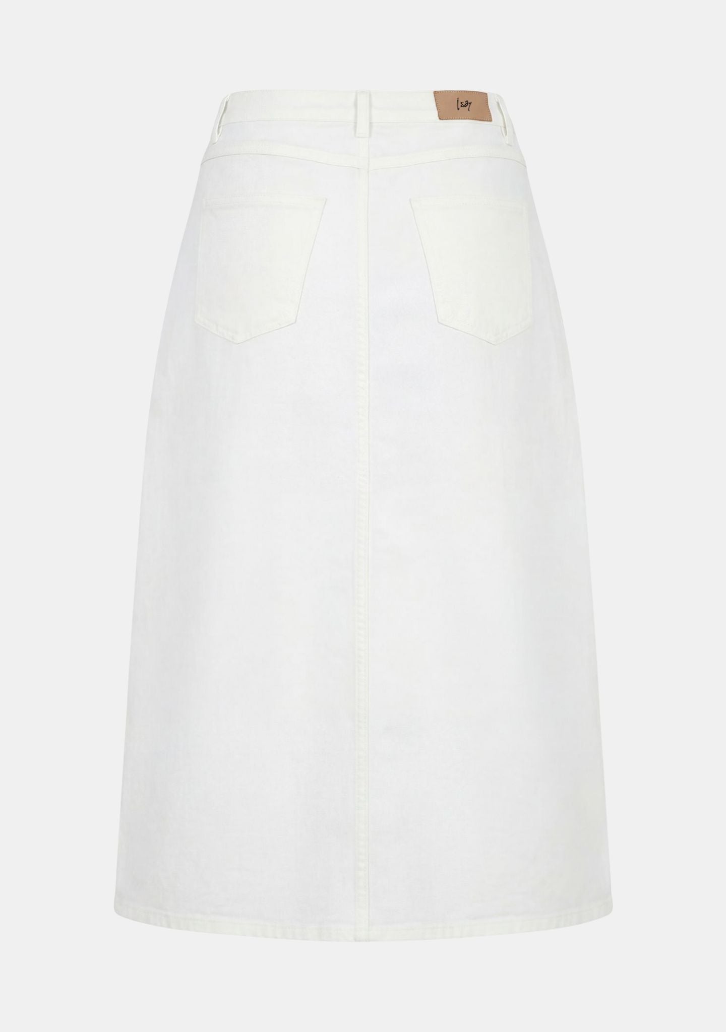 It's a midi denim skirt you can wear all year round. With bare legs and sandals in summer – and with knitwear and boots when the seasons change.