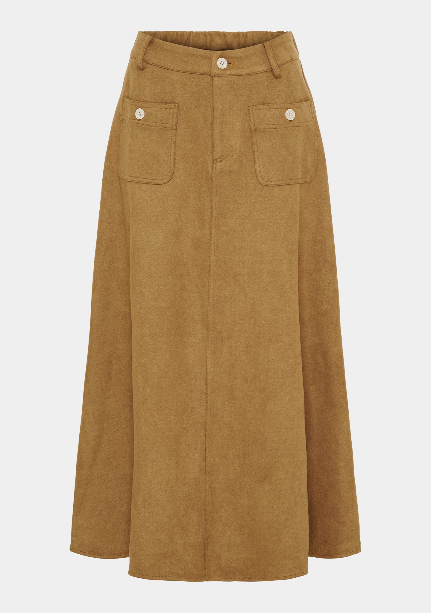 Kaja Skirt is a timeless skirt with a sophisticated and feminine expression. The high waist with a fixed front waistband and elastic at the back provides a beautiful silhouette and high comfort. The skirt has an elegant A-line flow, making it easy to style for both everyday and festive use. The fine front pockets with button details add a casual and modern twist to the design. Made of a shape-retaining polyester blend with elastane, offering stretch, freedom of movement, and a beautiful fit all day long.