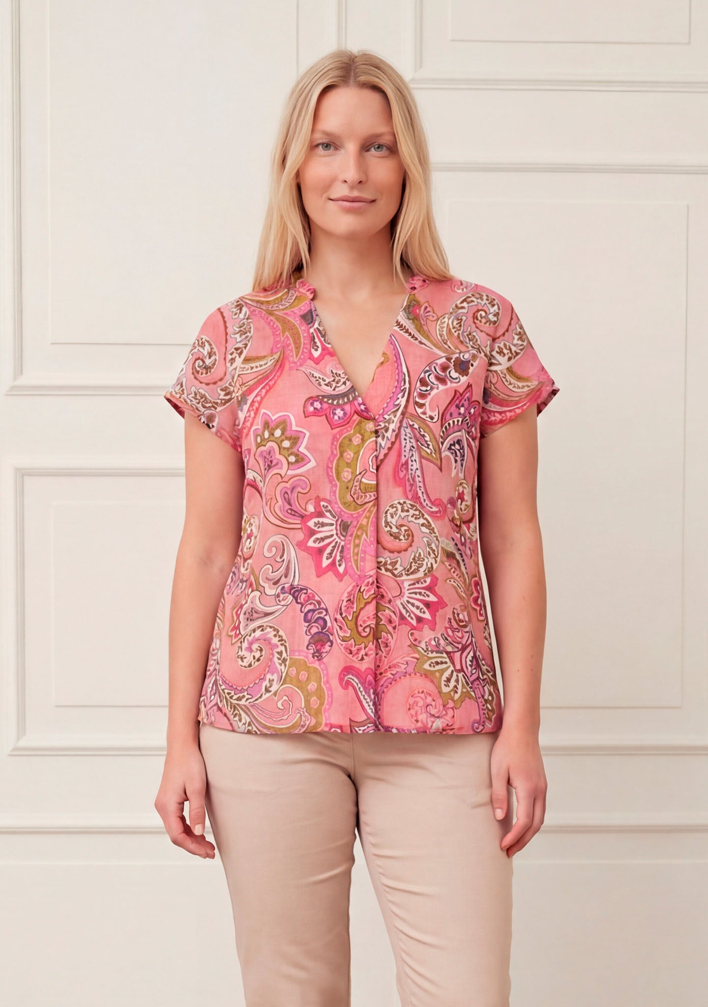 Lotta Top is one of those styles that instantly lifts an outfit. The print is vibrant and full of movement – the kind that adds personality without feeling too much.
