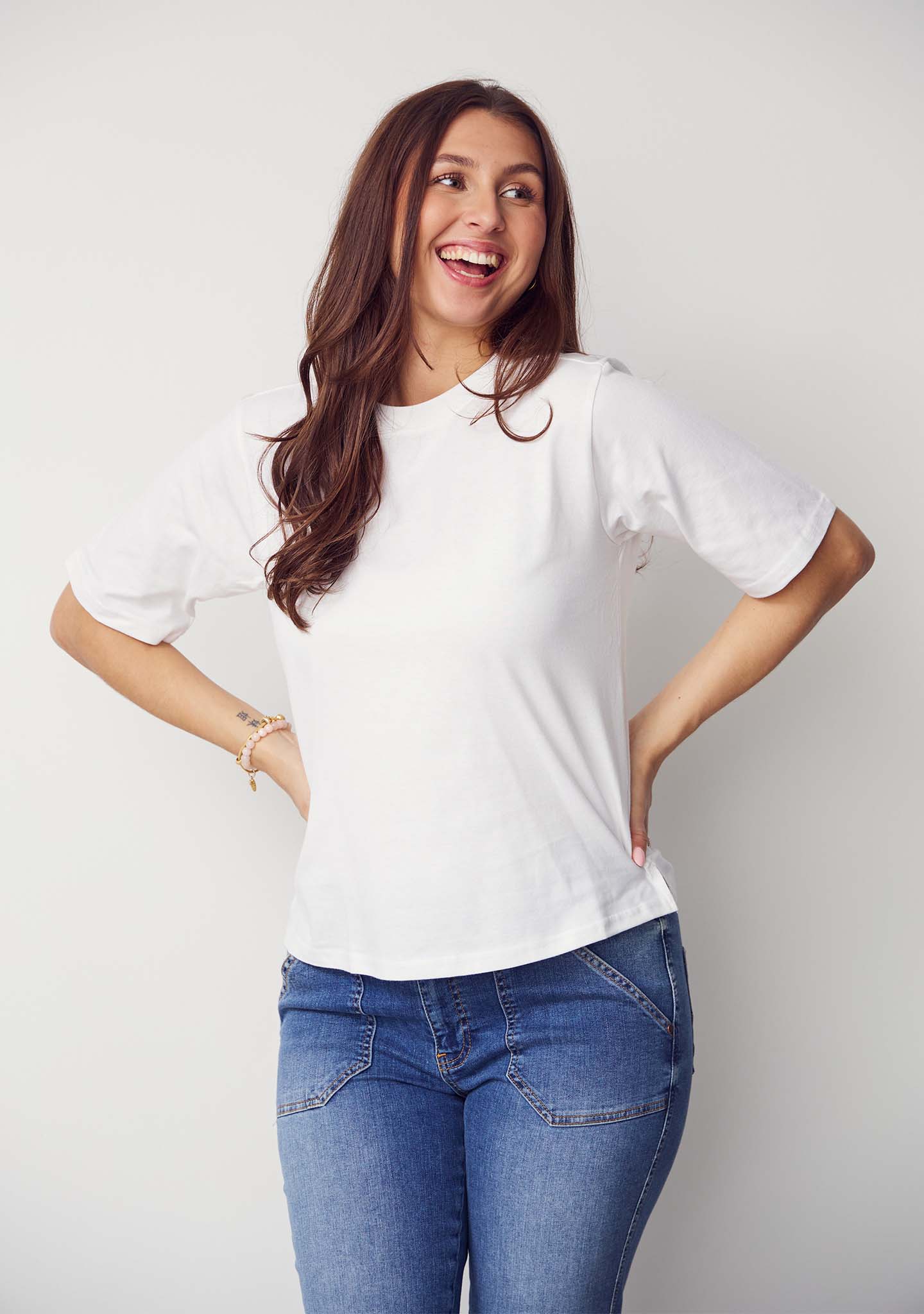 Tinni Basic T-Shirt is a quality basic t-shirt made from 100% cotton. The cotton is produced in Denmark, ensuring high quality. This t-shirt is incredibly soft and comfortable to wear, featuring a round neck and short sleeves. It has a classic fit that suits most body types. You can pair it with jeans, a skirt, or layer it under a cardigan or jacket. The Tinni Basic T-Shirt is a wardrobe staple that never goes out of style.