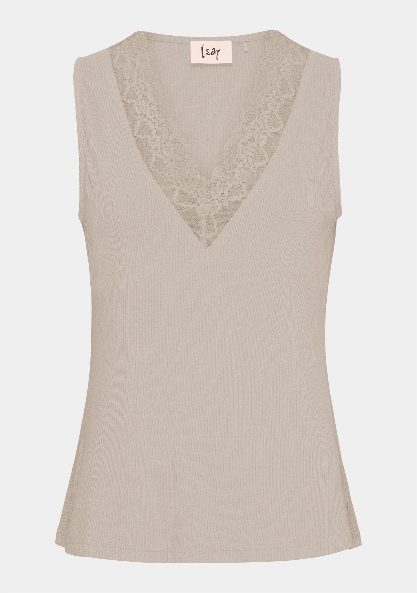 • Sleeveless top with V-neckline and lace trim
